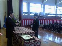 各担任が生徒一人一人を呼名した後、クラスの代表が登壇し、校長先生から卒業証書が授与されました。
