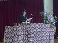 式辞で髙橋校長先生からは「予測困難な時代を、本校の校訓『よく考え まじめに がんばる』を胸に、力強くしなやかに生き抜いてほしい。この社会の将来を、今日皆さんに託します」と述べられました。また、PTA会長からは「一番苦労した人が幸せになる権利がある。努力を惜しまないでほしい」と祝辞をいただきました。