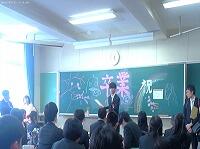 式歌「旅立ちの日に」を卒業生が保護者席に向きを変えて斉唱後、体育館を後に各クラスに戻り、最後のHRを行いました。