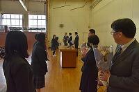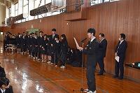 生徒会から花束贈呈の後、校歌斉唱をし、在校生に見送られながら、体育館を後にしました。