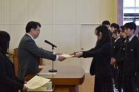 各担任が生徒一人一人を呼名した後、クラスの代表が登壇し、校長先生から卒業証書が授与されました。
