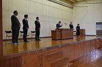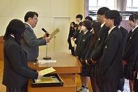 最初に、美術部・空手部・剣道部・課題研究発表・雪像コンテストの大会報告を受け、栄誉を讃え表彰伝達を行いました。