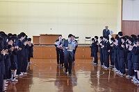 生徒指導部長からは、「この春休み期間も気を緩めることなく、リズムを整えて生活してほしい」こと、また、本年4月施行の改正道路交通法にもふれ、自転車乗車のルールについて十分注意して運転するう注意喚起がありました。