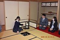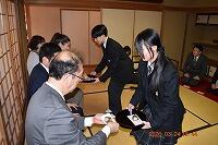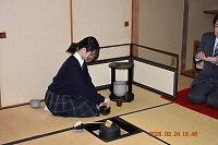 3月24日(火)、離任される先生方や日頃お世話になっている先生方に感謝の気持ちを表すお茶会を開きました。 外部講師の先生のご指導のもとで身につけた作法・お点前を披露させていただきました。    お茶菓子や掛け軸の説明も、緊張することなく普段の練習成果を十分発揮し、見事な落ち着きぶりで先生方をもてなすことができました。    日々、精進し稽古を重ねて茶道の精神を磨いていきますので、今後とも宜しくお願いいたします。