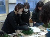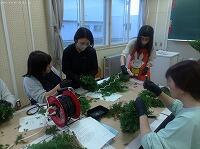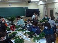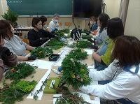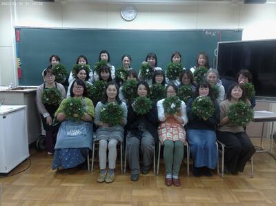 「森の香りのクリスマスリース作り」をテーマに21名が参加しました。PTA研修委員会副委員長の山本 愛様(calmato(カルマート)店主)さんを講師にお招きし、クリスマスリース作りを行いました。